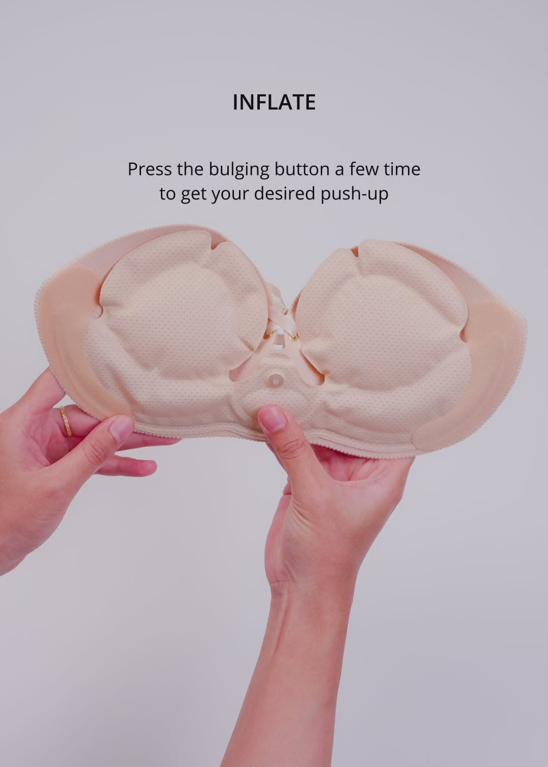 The new drawstring closure empowers you to sculpt your desired silhouette, ensuring a flawless, gap-free fit. The dual-layered air pads offer unparalleled customization, allowing you to amplify your natural beauty with a push-up effect that enhances your bust by up to two cup sizes, all while maintaining an enviable firmness.